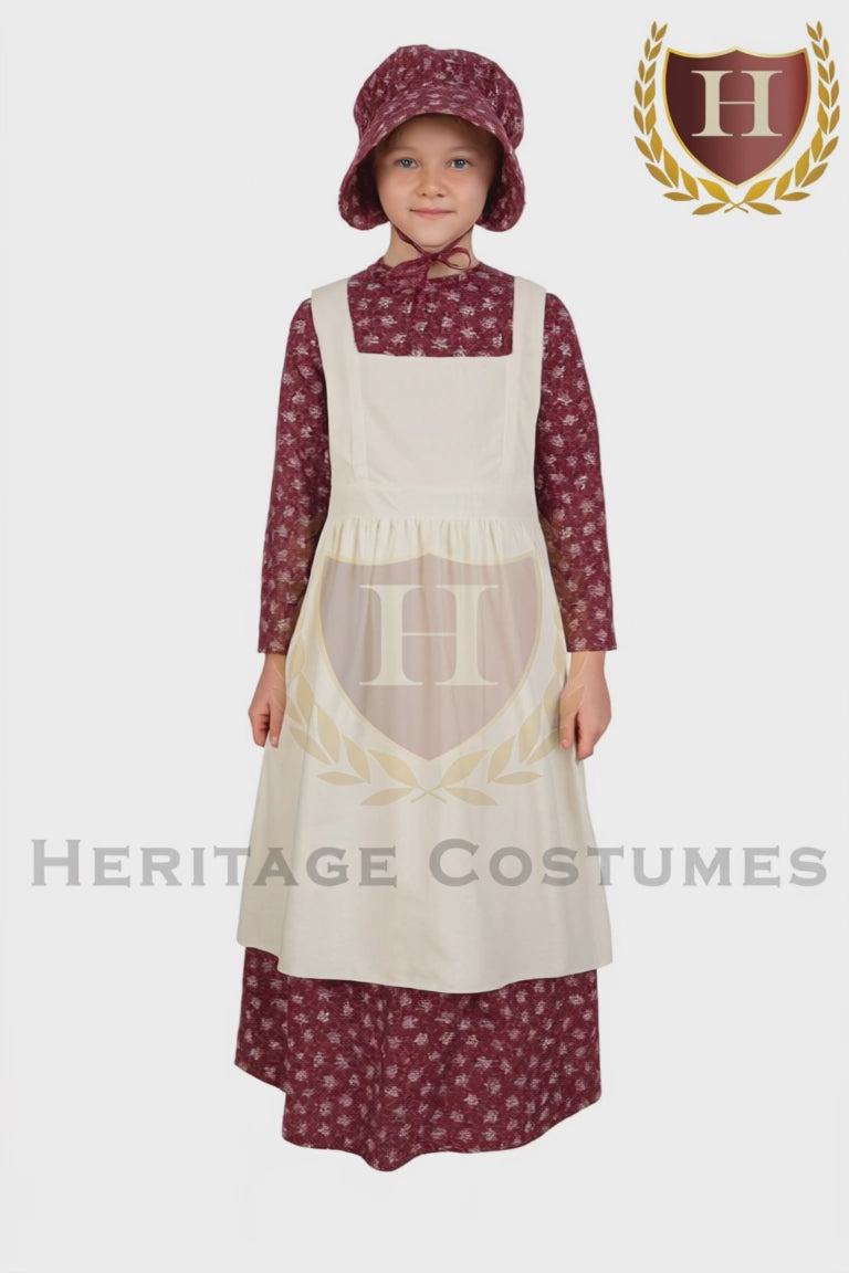 🌾 Children’s Pioneer Girl Costume – 1800s Prairie Dress with Bonnet & Apron