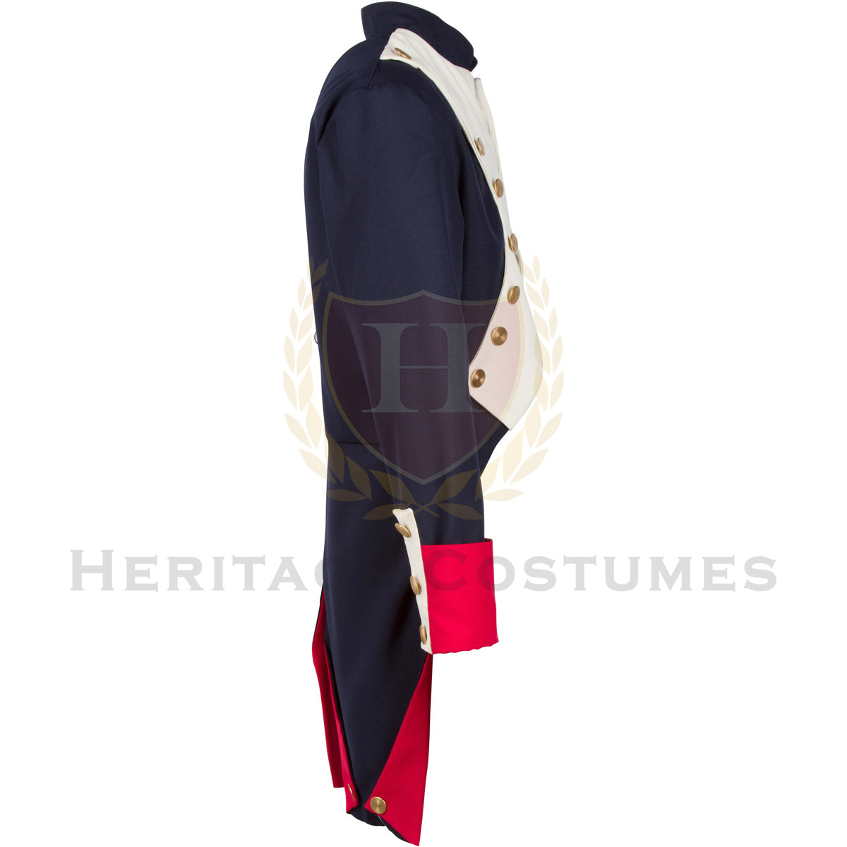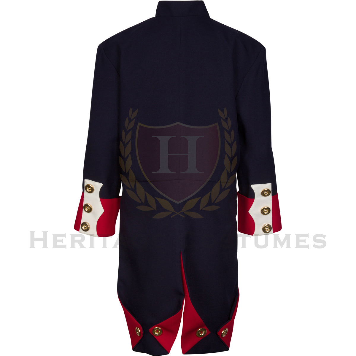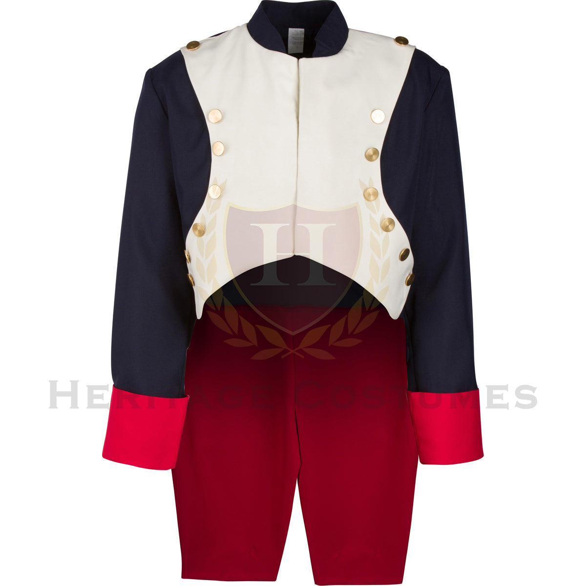 1️⃣ Deluxe Officer’s Bib Front Jacket – French Revolutionary War–inspired jacket with contrasting off-white lapels, red tails, and decorative gold buttons.