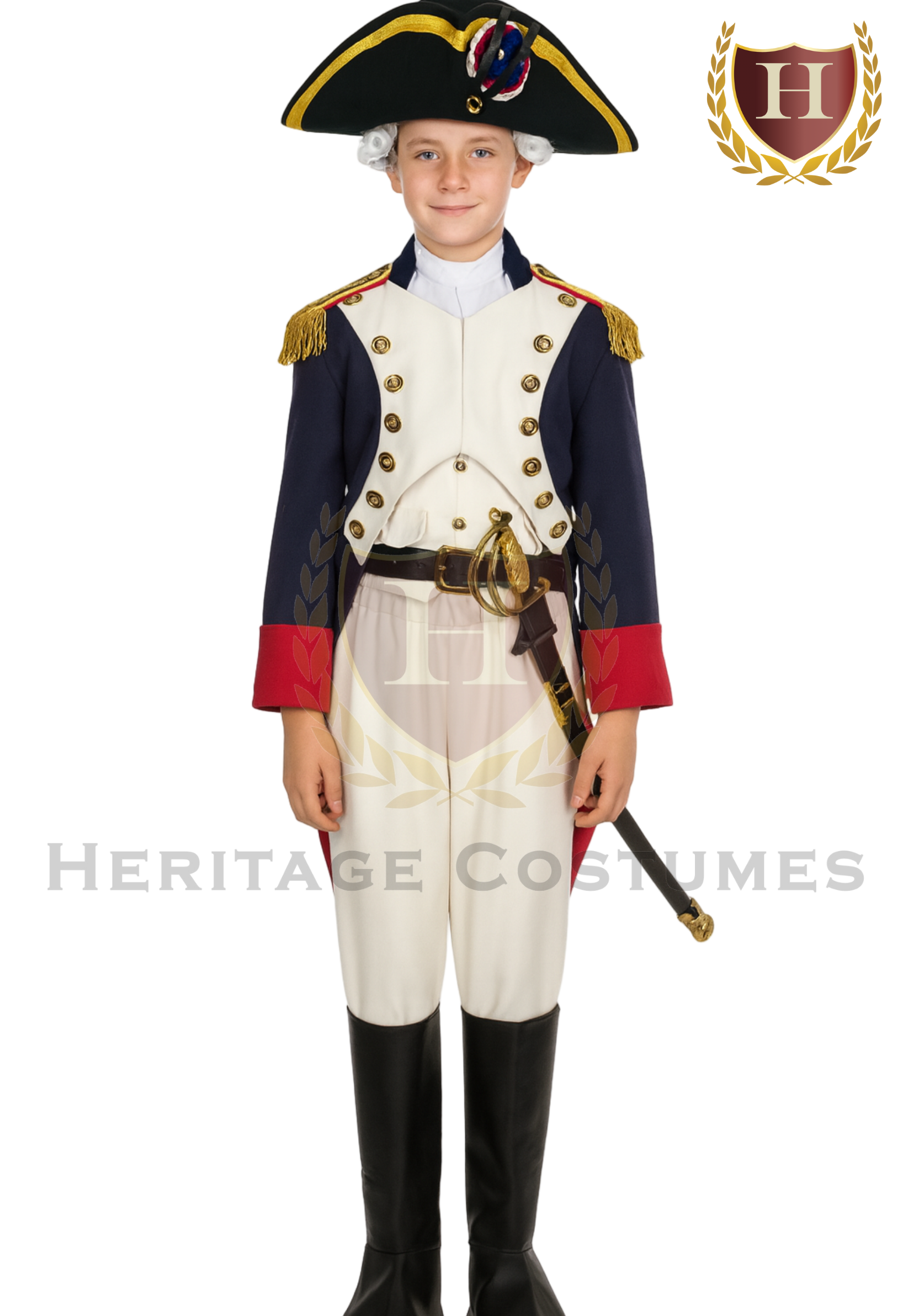 Marquis de Lafayette was no stranger to revolution. During his years in America, he fought alongside the colonists and became close friends with George Washington, Alexander Hamilton, and Thomas Jefferson. Now your child can step into history with this detailed and authentic costume, perfect for school projects, Revolutionary War reenactments, theater productions, and patriotic events.