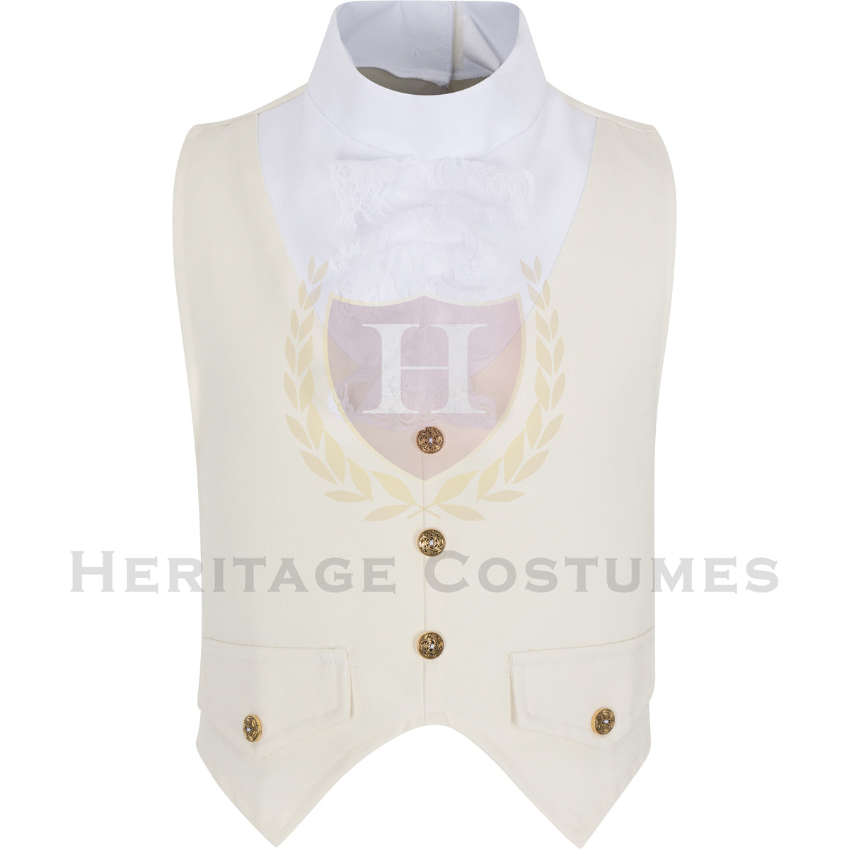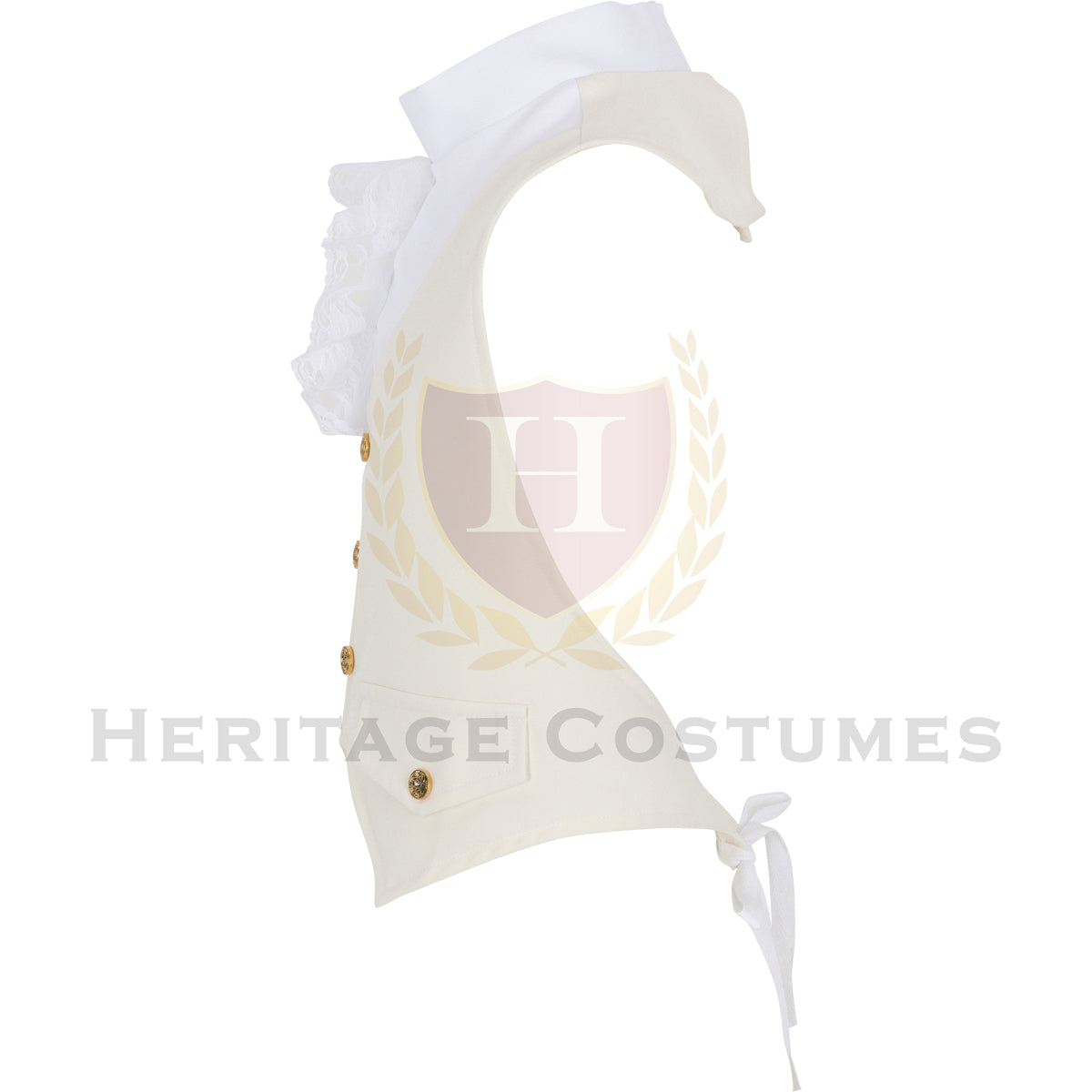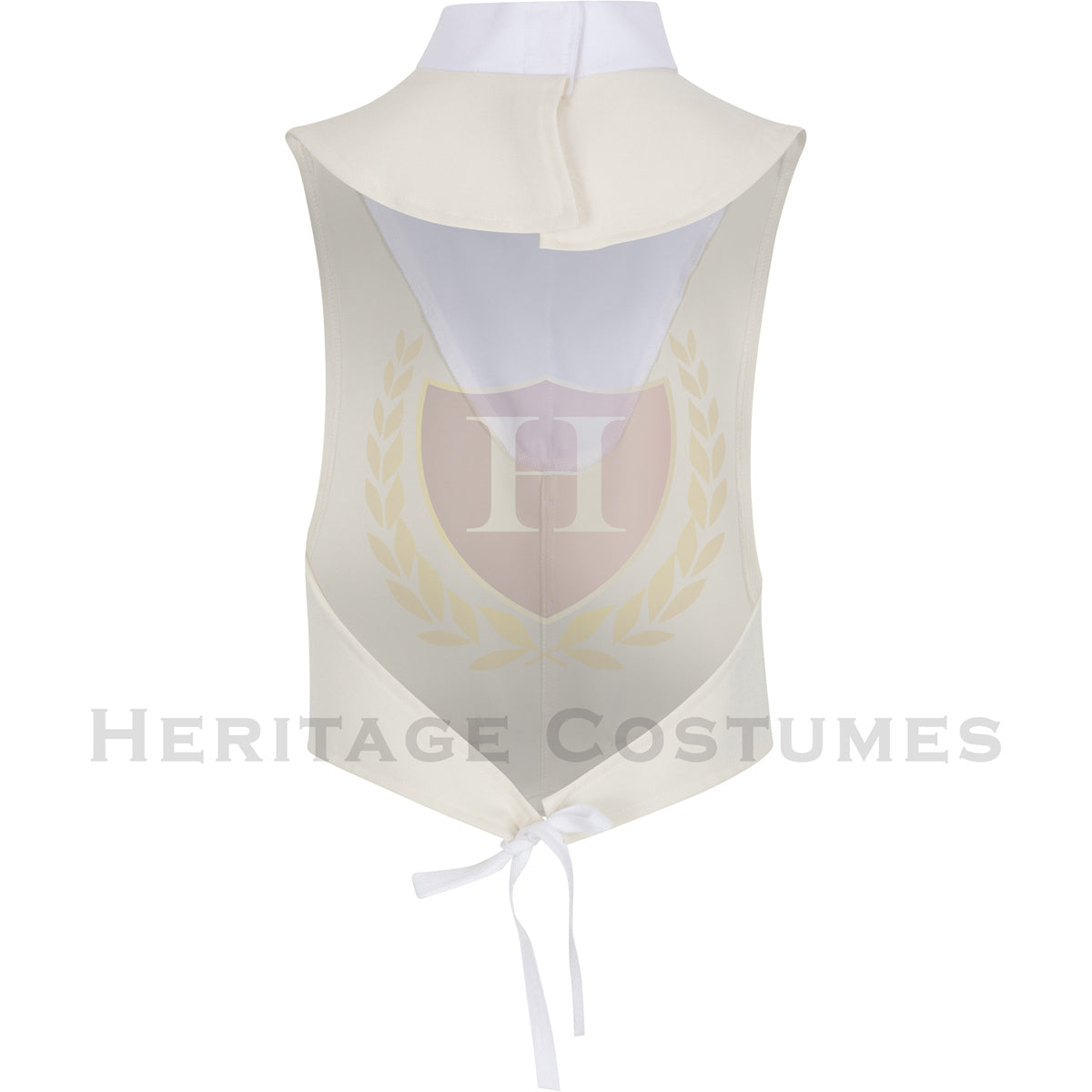 2️⃣ Ivory Backless Military Vest – Features an attached lace dickey (jabot) at the neckline, fastens at the back with Velcro, and laces for an adjustable fit.