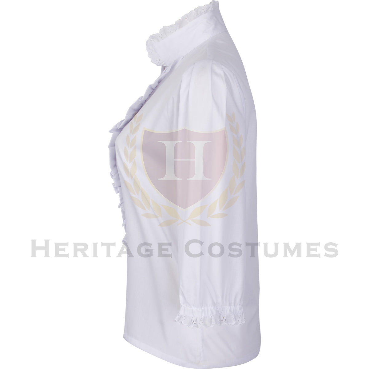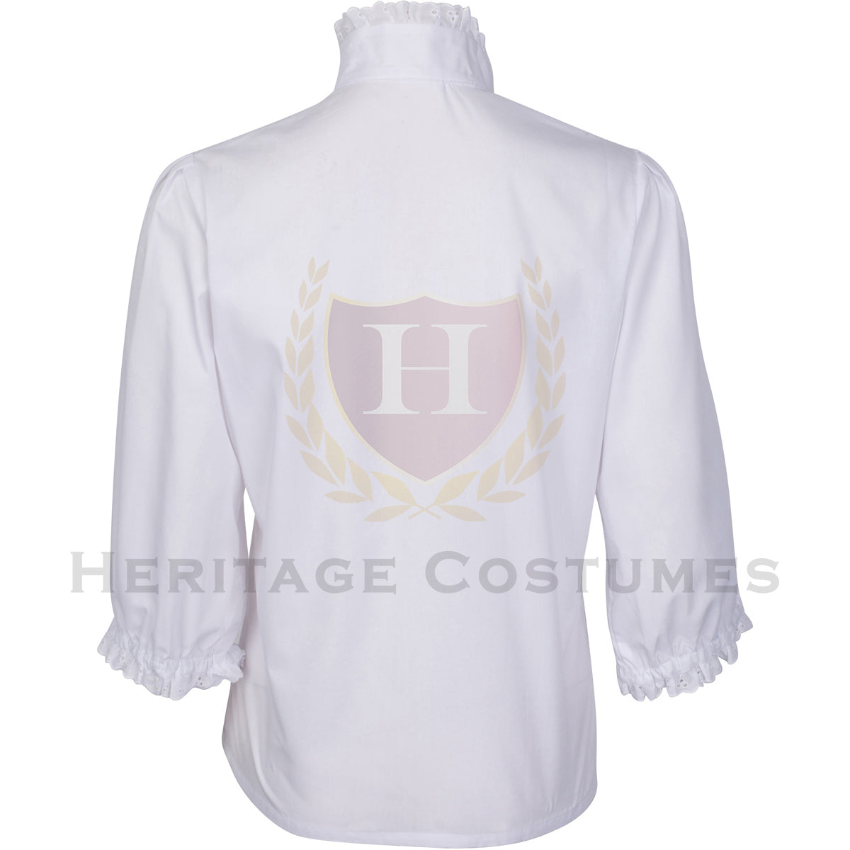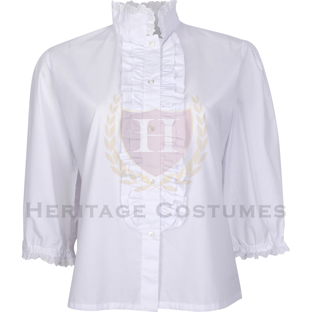 - Features ¾-length sleeves, delicate eyelet trim, and a ruffled front placket