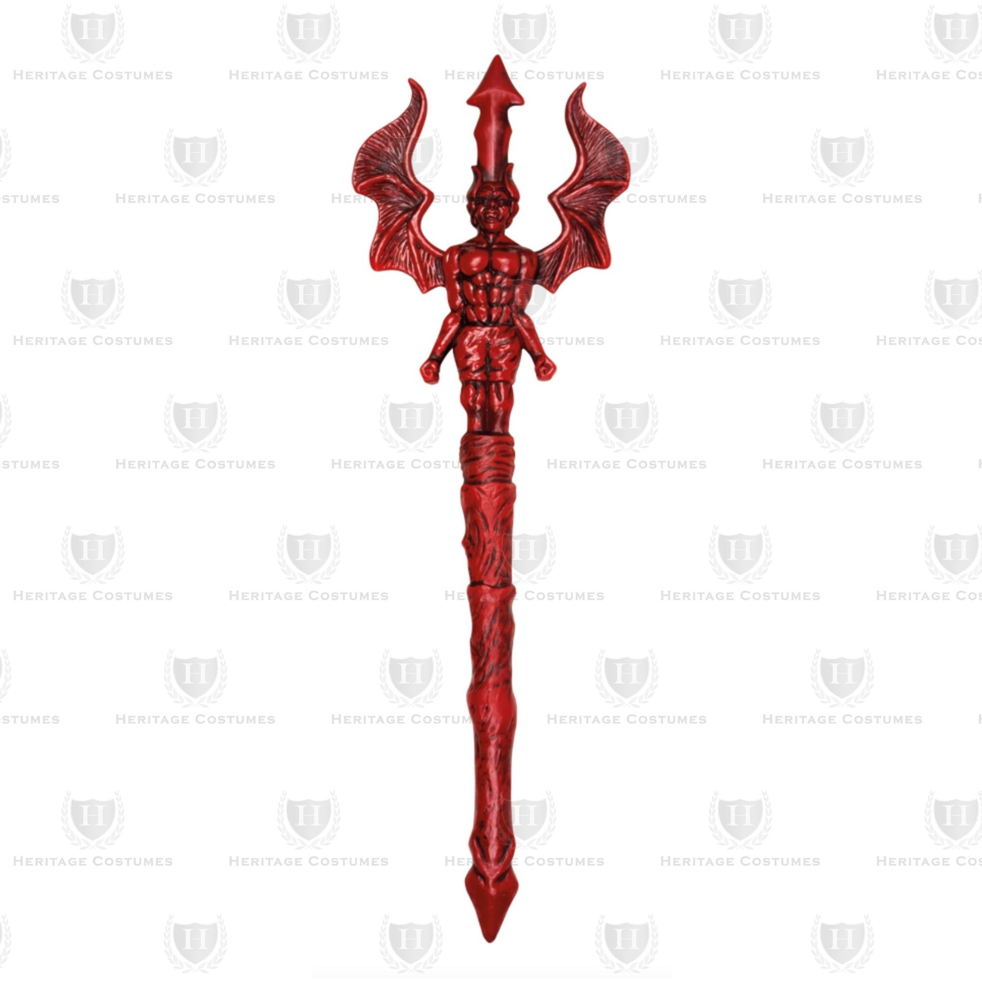 Designed to evoke the power of the ancient Greek god of the underworld, this 21-inch red trident is adorned with symbols representing the souls of the dead, symbolizing Hades' dominion over the spirits. Made from durable plastic, it comes in two easy-to-assemble pieces and is a striking addition to any Hades costume for cosplay, theatrical productions, or historical reenactments.