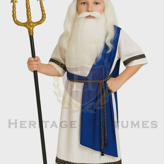 Let your child step into the role of Poseidon, the mighty Greek god of the sea, horses, and earthquakes. Known to the Romans as Neptune, Poseidon was one of the twelve Olympians and a central figure in ancient mythology. This regal and educational costume allows children to embody the strength, wisdom, and mystery of this powerful god while exploring ancient Greek and Roman history.
